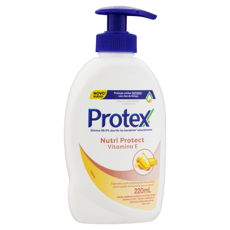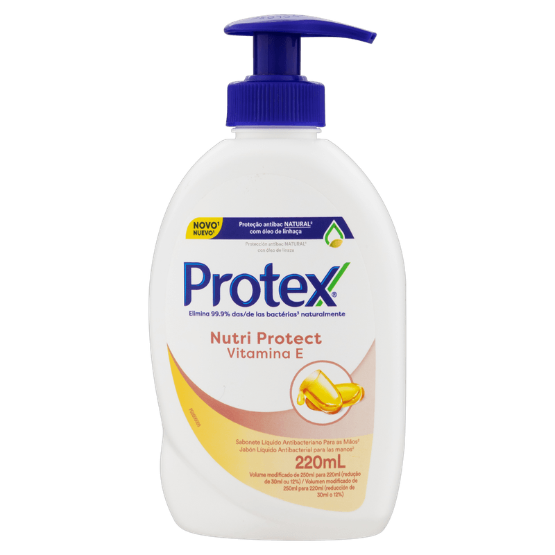 Sabonete Líquido para as Mãos Antibacteriano Protex Nutri Protect Vitamina E Frasco 220ml Pump