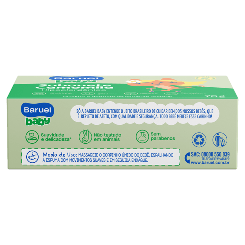 • Composição: Extrato natural de camomila e ingredientes suaves