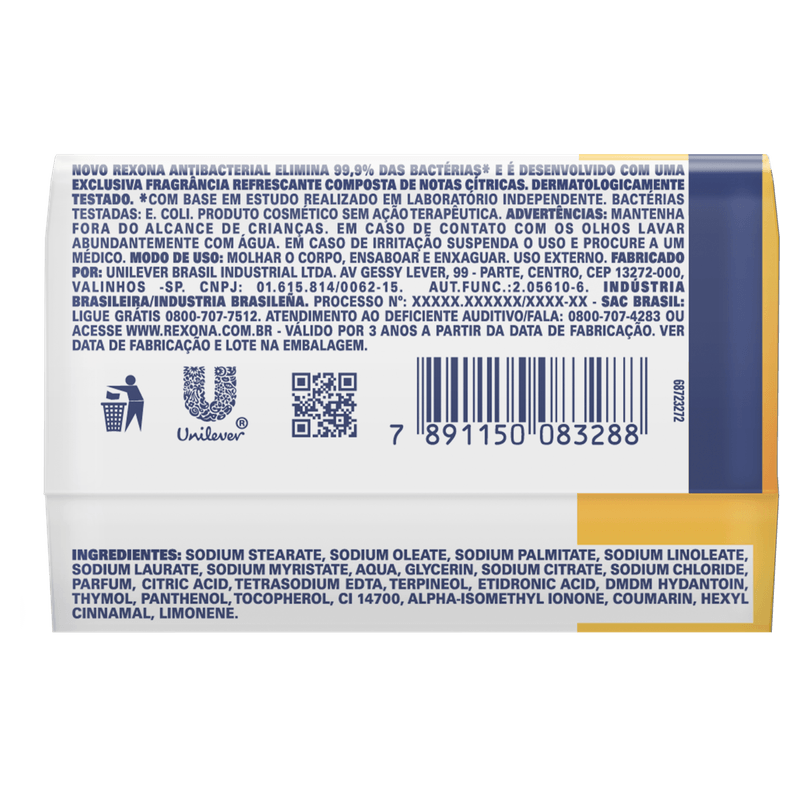 Sabonete Barra Antibacterial Multivitaminas Rexona Envoltório 84g