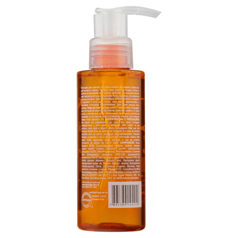 acnéicas com a maior concentração de ácido salicílico permitida Benefícios: Limpeza eficaz e controle da oleosidade de peles oleosas e acnéicas sem causar agressão ou ressecamento da pele, Combate a acne, Desobstrui os poros, Ação antiinflamatória, Paraben Free, Álcool Free, Não testado em animais, Dermatologicamente testado"
