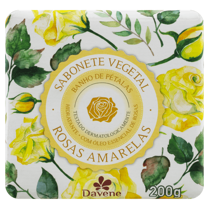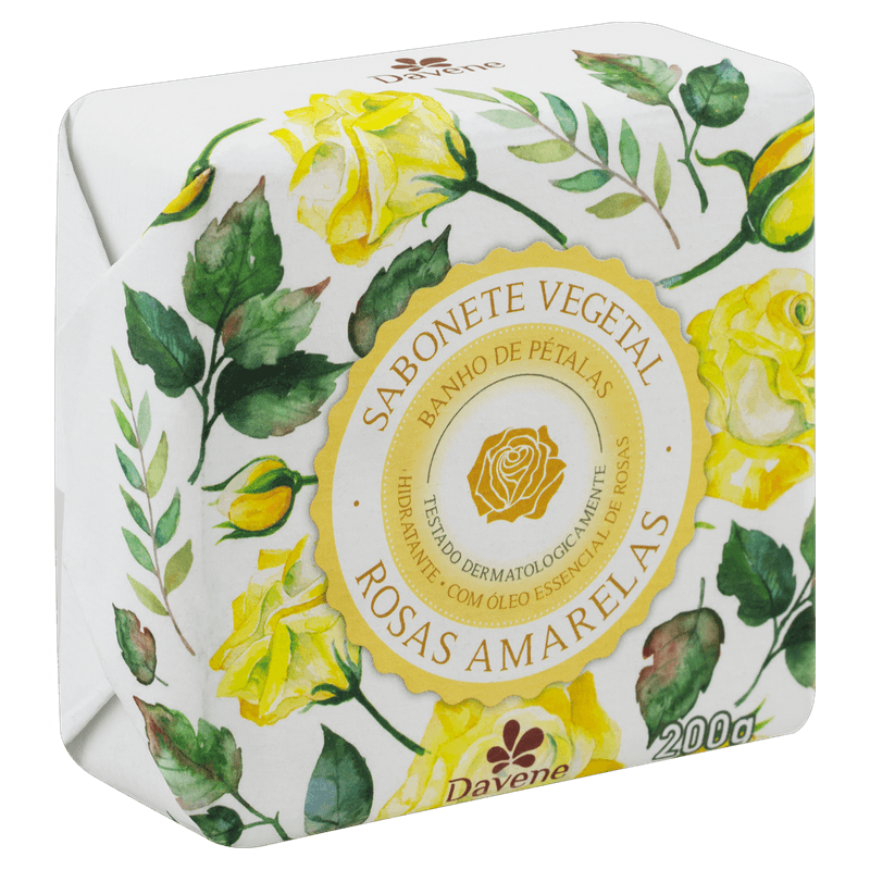 Sabonete Barra Vegetal Rosas Amarelas Davene Envoltório 200g