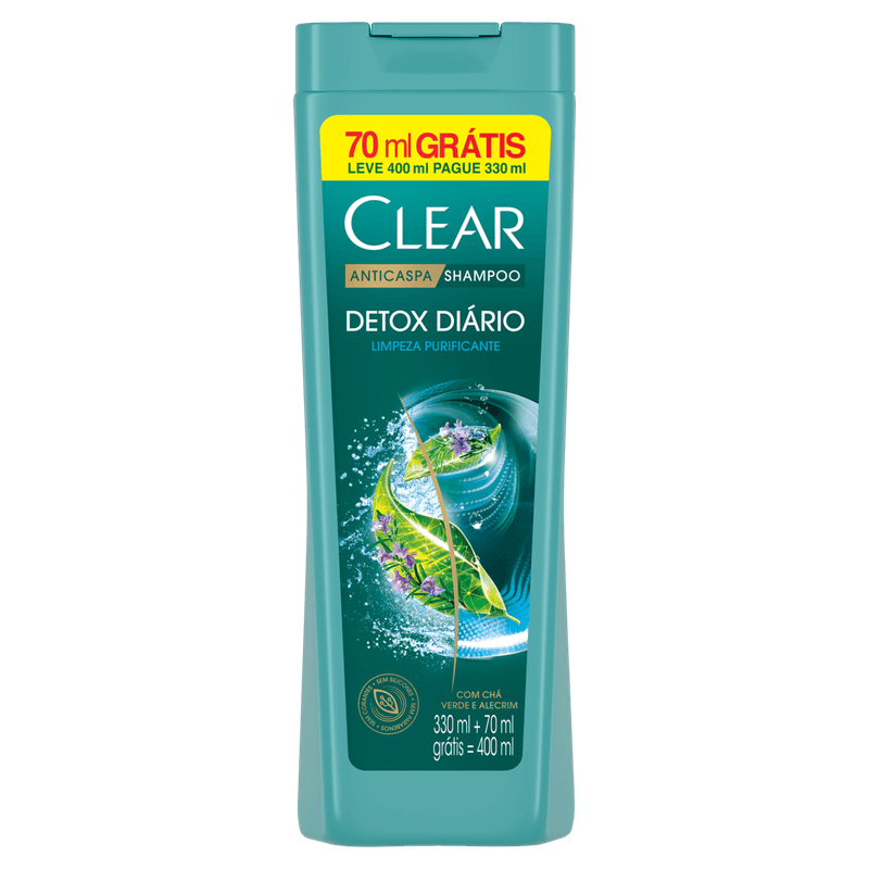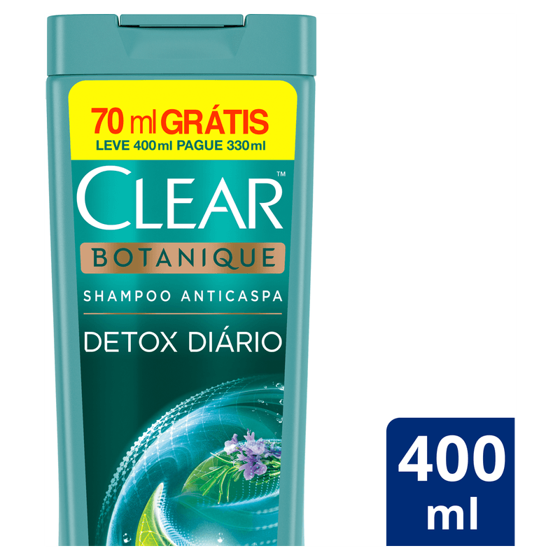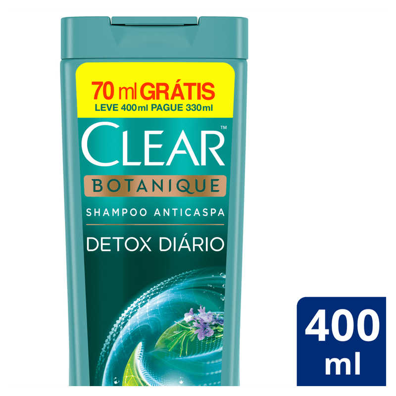 Shampoo Anticaspa Clear Botanique Detox Diário Frasco Leve 400ml Pague 330ml
