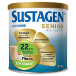 O Sustagen Senior 50+ Sem Sabor é um complemento alimentar em pó, apresentado em embalagem de 370g, indicado para suplementação nutricional de adultos acima de 50 anos, visando complementar a alimentação diária.