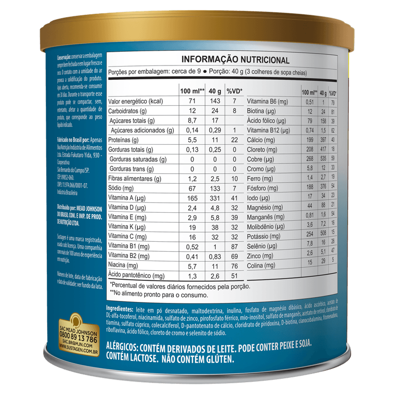 O consumo deve ser moderado e conforme orientação, não substituindo refeições. Pessoas com alergia a leite, derivados ou soja devem evitar o produto. Armazenar corretamente para evitar perda de qualidade. Verifique o prazo de validade antes do uso.