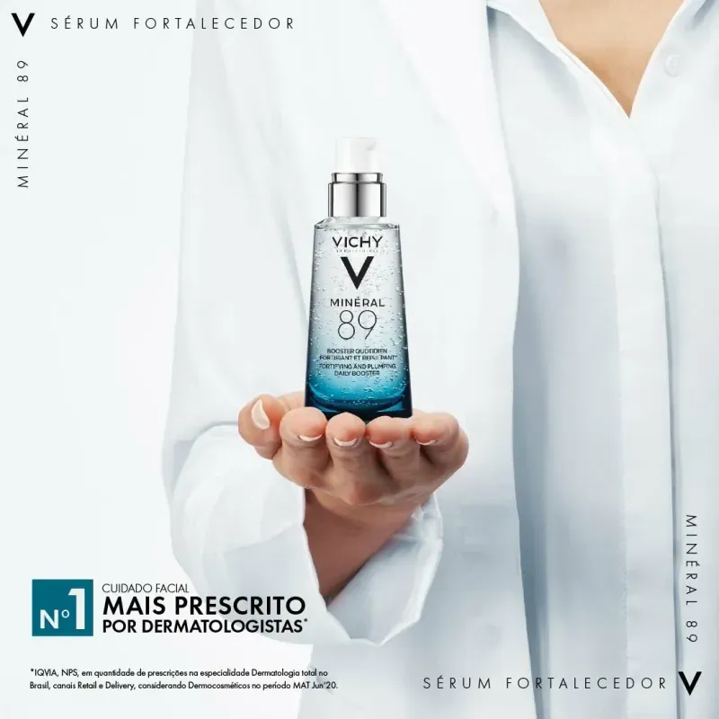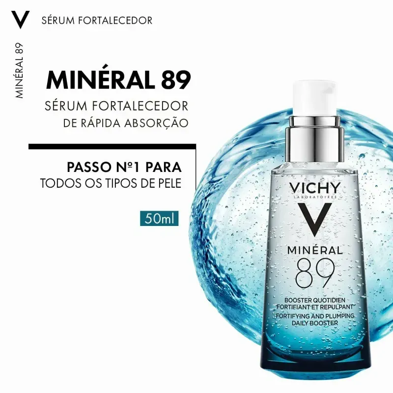 O Sérum Hidratante Facial Vichy Mineral 89 combina 89% de água vulcânica rica em minerais com ácido hialurônico puro, proporcionando hidratação intensa e fortalecimento da barreira cutânea. Ideal para todos os tipos de pele, sua fórmula leve e de rápida absorção é livre de fragrâncias e parabenos, testada dermatologicamente e aceita pela National Eczema Association. Com apenas 11 ingredientes, o uso contínuo resulta em uma pele mais luminosa e saudável. Para melhores resultados, aplique 2 gotas do sérum após a limpeza, de manhã e à noite, com movimentos suaves. O MINÉRAL 89 é clinicamente comprovado para aumentar a resistência da pele em 71% após 1 hora e promover um preenchimento visível em 21% após 4 semanas de uso. A Água Vulcânica de Vichy, rica em 15 minerais essenciais, fortifica a pele, enquanto o ácido hialurônico suaviza rugas e preenche a pele.